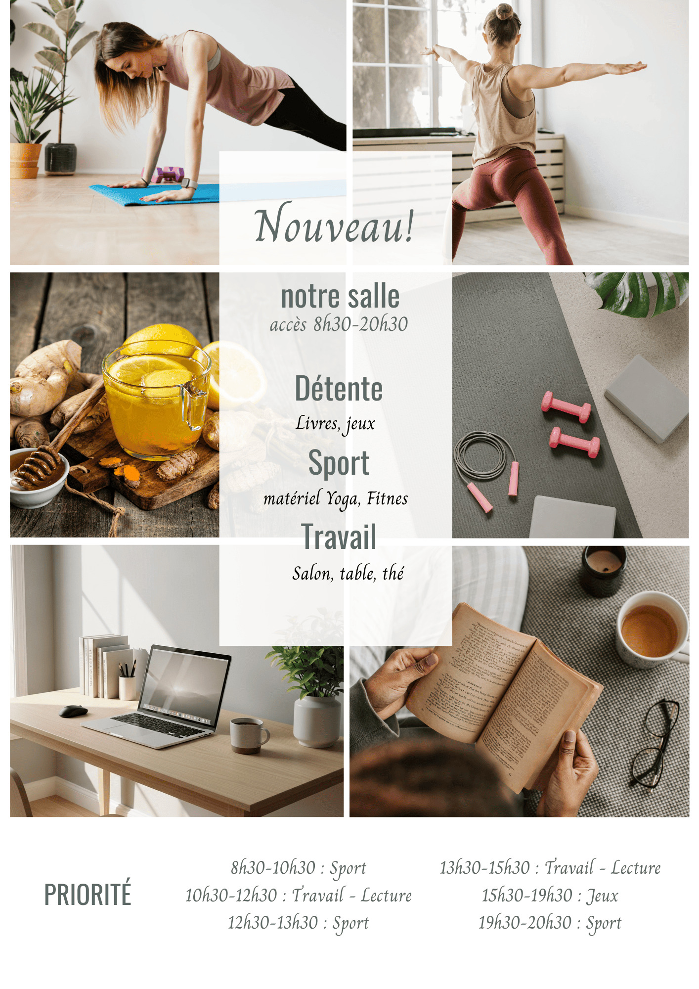Salle de réunion disponible (15 m²) pouvant accueillir 8 personnes, avec un paperboard, un écran TV, un salon extérieur, du thé, du café et des collations.